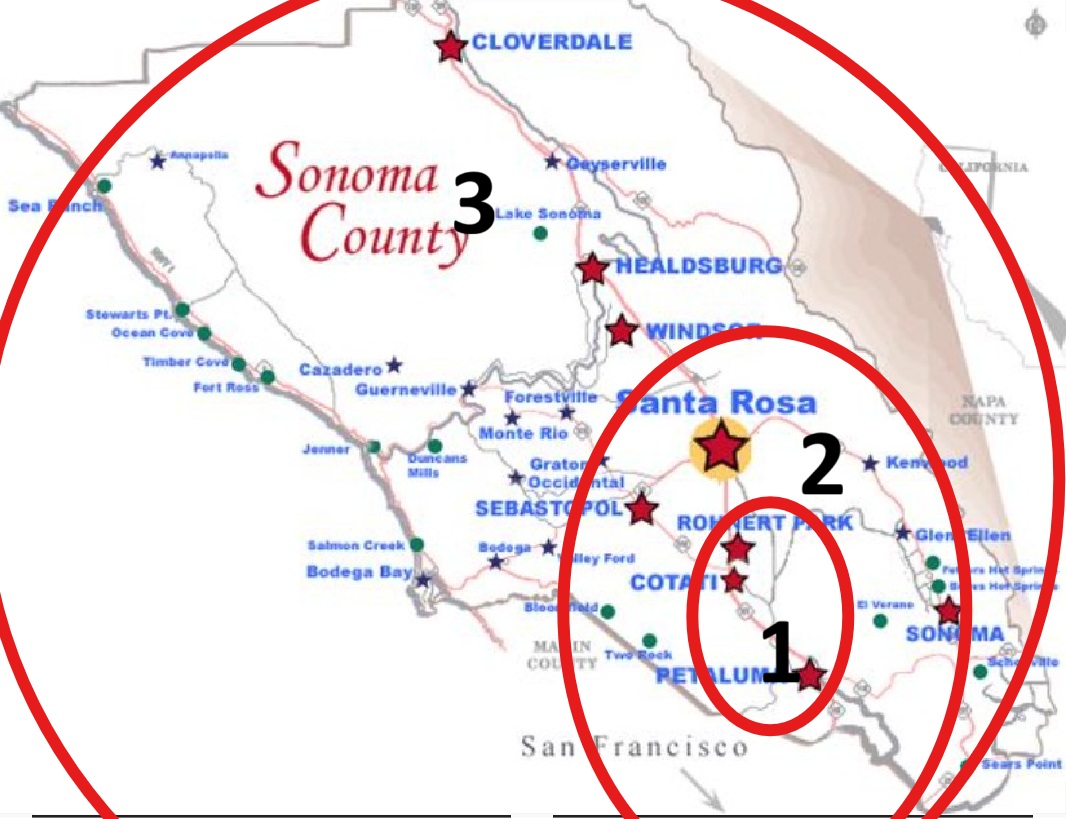 Please take notice that we will charge and additional respective $10 or $20 in zones 2 or 3. See zone map at the bottom of page